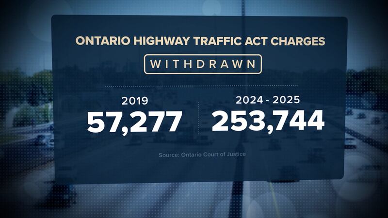 Court statistics show the number of dropped charges are skyrocketing in Ontario. In 2019, about 57,000 Highway Traffic Act charges were withdrawn before trial.