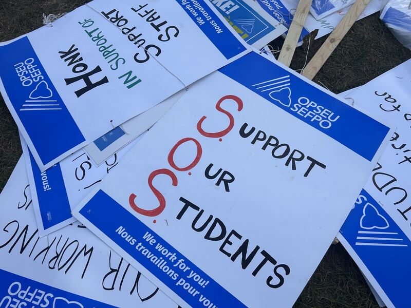 “We want their attention,” added Vikki Poirier, president of OPSEU Local 238. “We want both sides to go back to the table. We want our members to get back in there to support the students.”