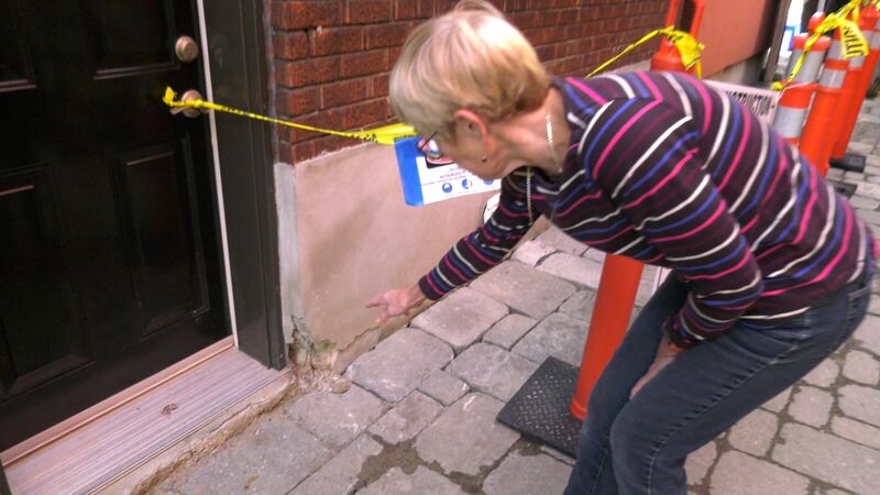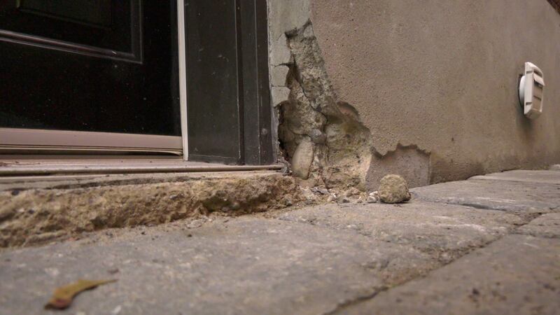 Jocelyne Caloz says it began in August when a man knocked on her door offering to fix some of the cement, known as parging, along the bottom of her house.