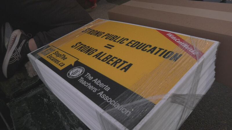 Those involved in the rally say their goal was to go door-knocking in Calgary-Bow, Demetrios Nicolaides’ constituency, and hand out signs in support of Alberta’s educators.
