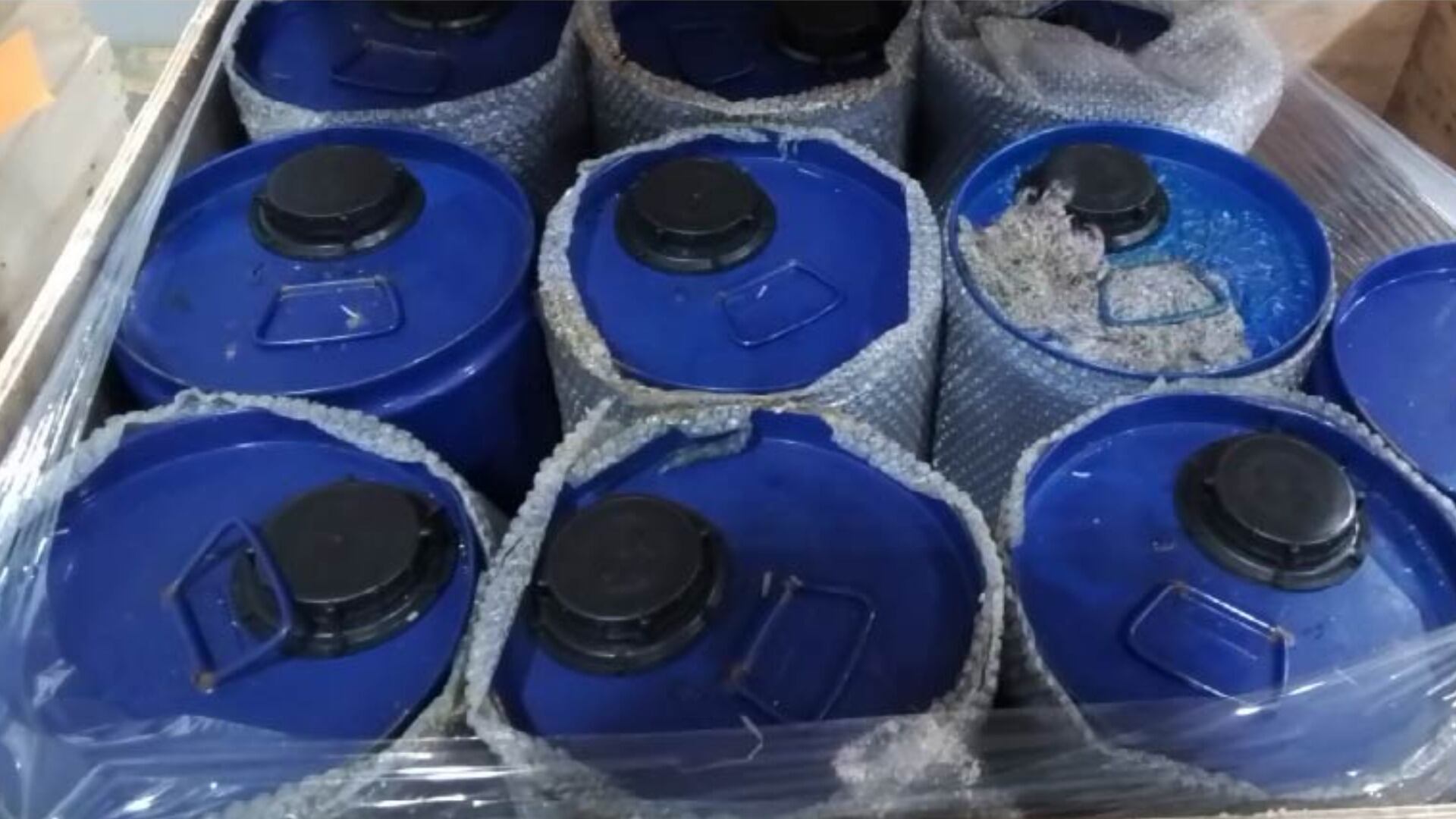 “The containers were flagged and referred to border services officers by CBSA intelligence personnel in the Pacific Region and from the National Targeting Centre. Within the containers, CBSA officers found 60 clear jugs and 20 blue drums.”