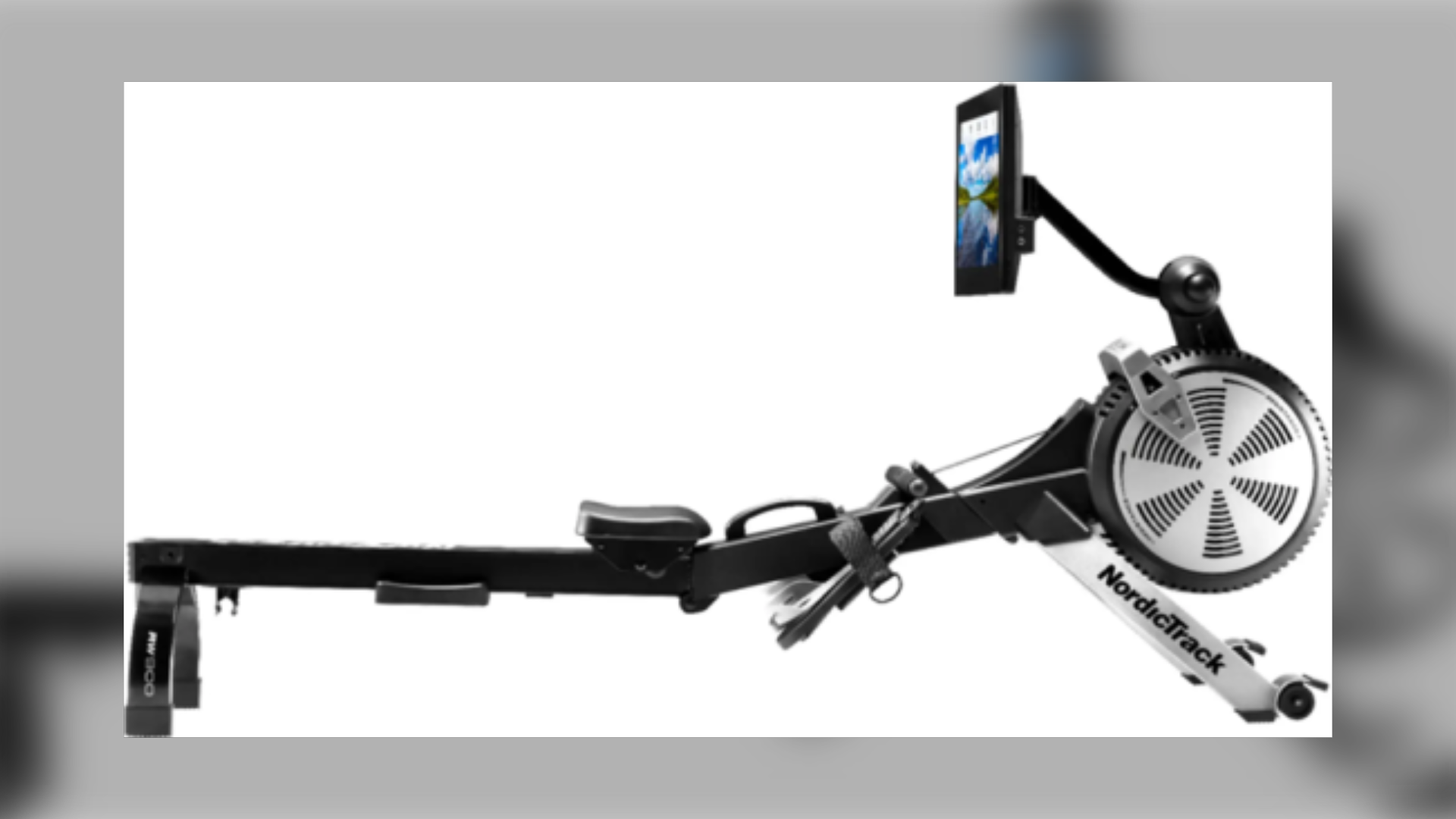 The recalled rowing machines are black, gray and white and have “NordicTrack” printed in black letters on the front legs of the machine. The back legs of the machine also have “RW900” printed in white letters.