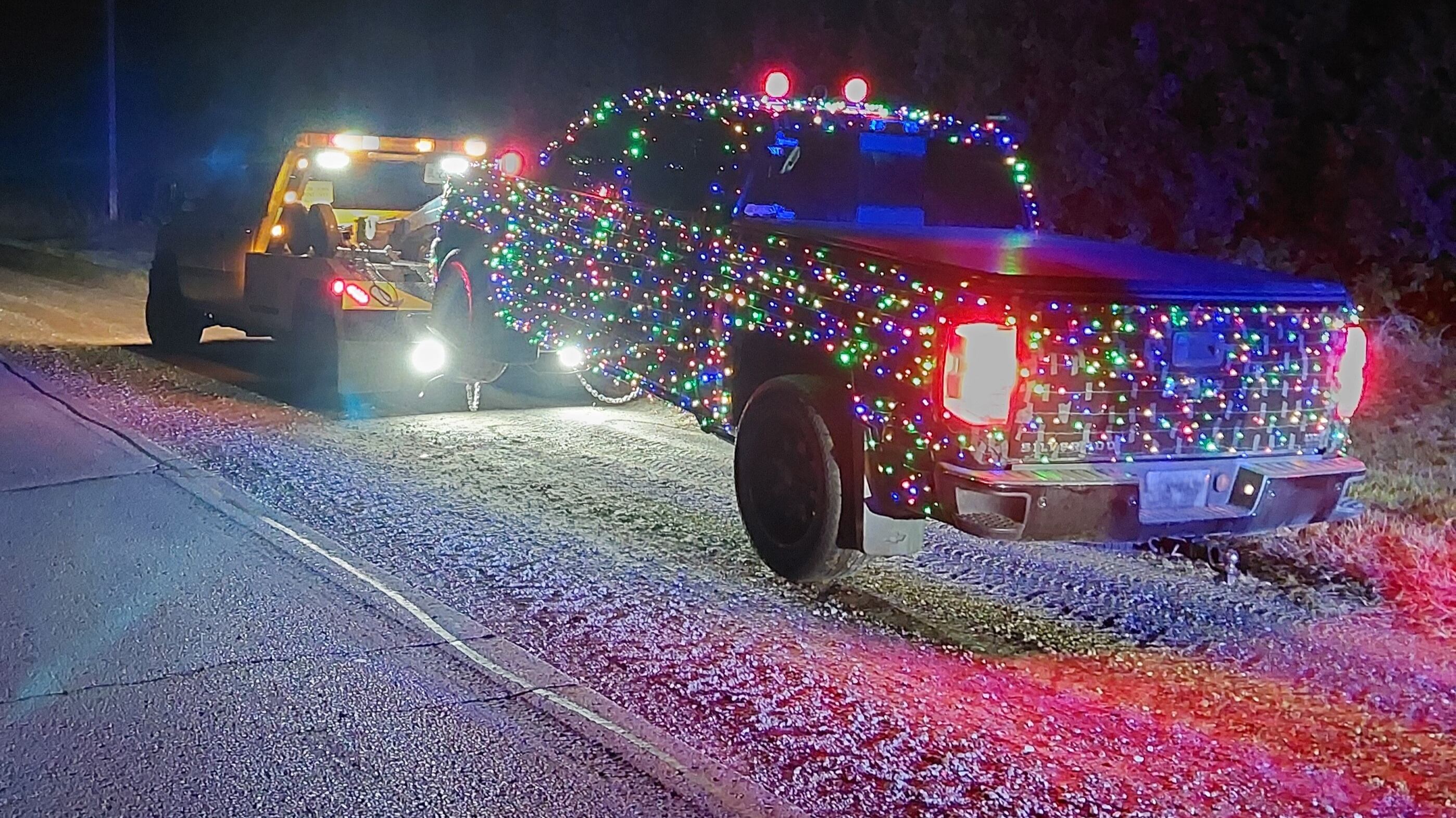 Ontario Provincial Police said an officer spotted the vehicle, decorated with colourful Christmas lights, in Norfolk County on Saturday.