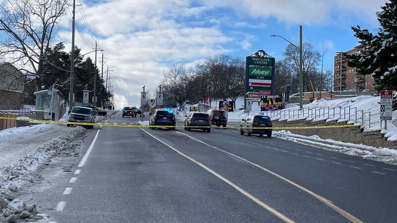 The Waterloo Regional Police Service said the pair were walking in the Cedar Street area near the Westgate Centre plaza just before 1 p.m. Thursday.