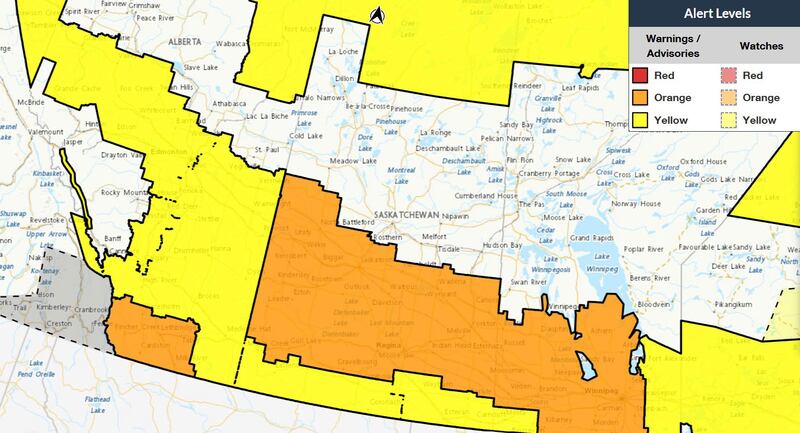 A similar alert was issued for an area of the Northwest Territories just north of Yellowknife.