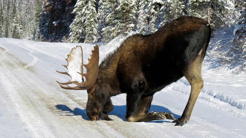 - streaks of fresh salt on the pavement, as moose are known to lick it.