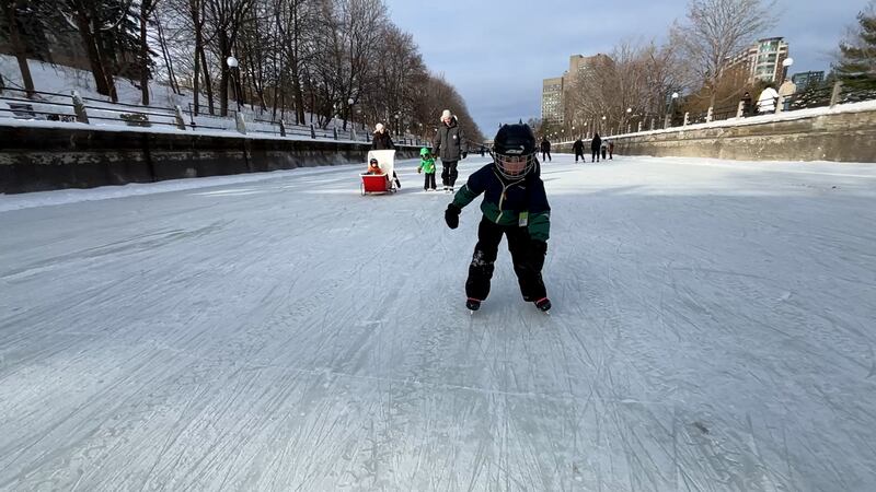 Rideau Canal Skateway in Ottawa, 2026 A young skater using an assist to practise gliding along the Rideau Canal Skateway in Ottawa on January 5, 2026. (CTV News Ottawa)