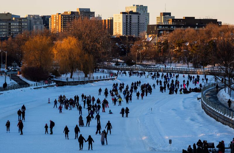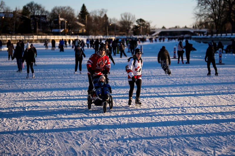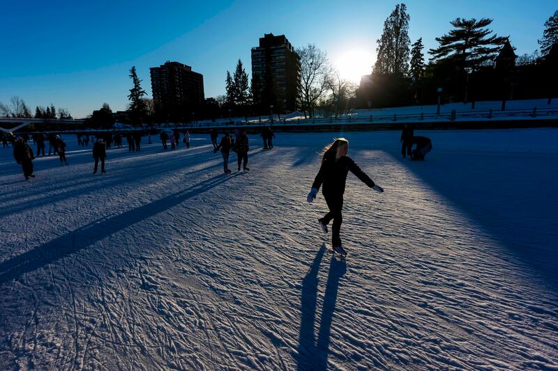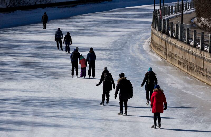 People skate along the Rideau Canal Skateway People skate along the Rideau Canal Skateway in Ottawa, on Monday, March 2, 2026. The Rideau Canal is a UNESCO World Heritage Site. THE CANADIAN PRESS/Justin Tang