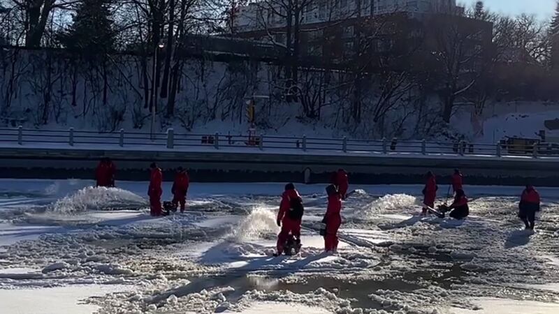 Rideau Canal Skateway National Capital Commission crews work on the Rideau Canal Skateway on Sunday, Dec. 14, 2025. (NCC/Instagram)