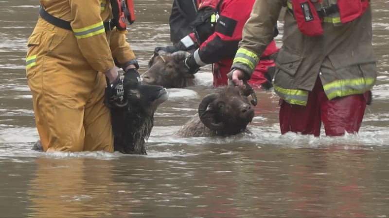 The effort also saw volunteers from Comox Valley Search and Rescue carry four sheep through waist-high floodwaters.