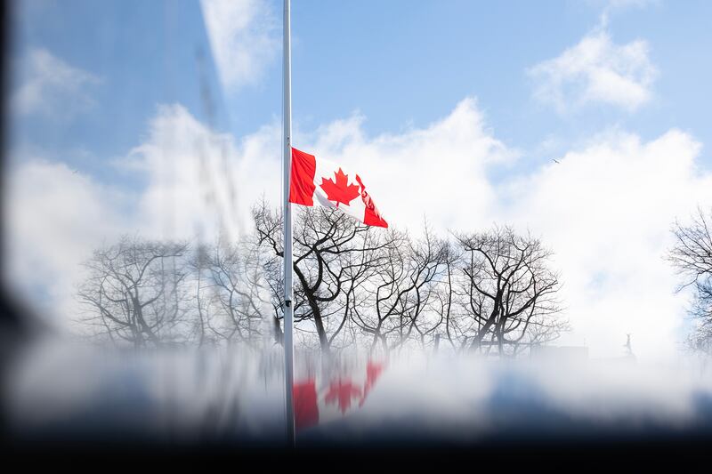 Flags at federal buildings will fly at half-mast for the next seven days, a visibly emotional Prime Minister Mark Carney told reporters on Parliament Hill.