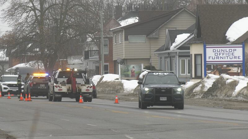 Dunlop Street West was closed from Frances Street North to Eccles Street North for several hours. Frances Street North was also closed from Dunlop Street West to Henry Street as crews remained on scene.