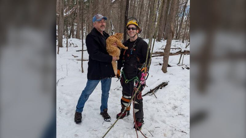 A curious and daring orange cat that found itself stuck far up a backyard tree in Orléans was able to be rescued with help from local residents and an arborist who took to social media to call for help.