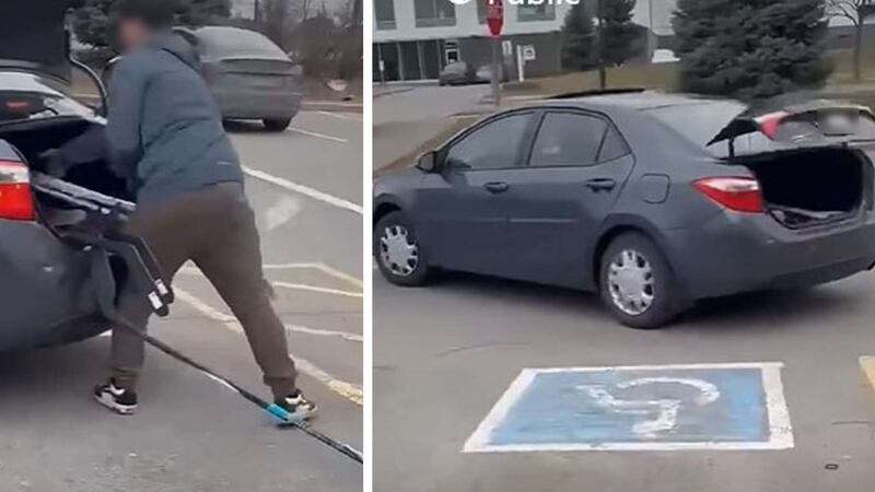 In a video of the theft, the suspect can be seen tossing several sticks into his car before quickly fleeing, without even closing the trunk.