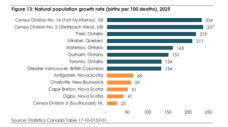 Today, more people in the province are dying each year than are being born. Newfoundland and Labrador and Nova Scotia are experiencing the same phenomenon.