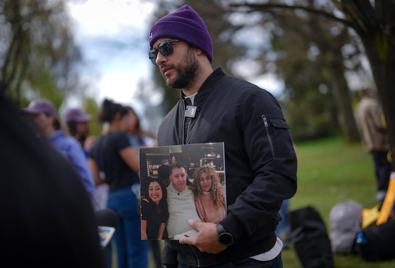 Alejandro Samper attended the protest dressed in black and carrying a family photo.