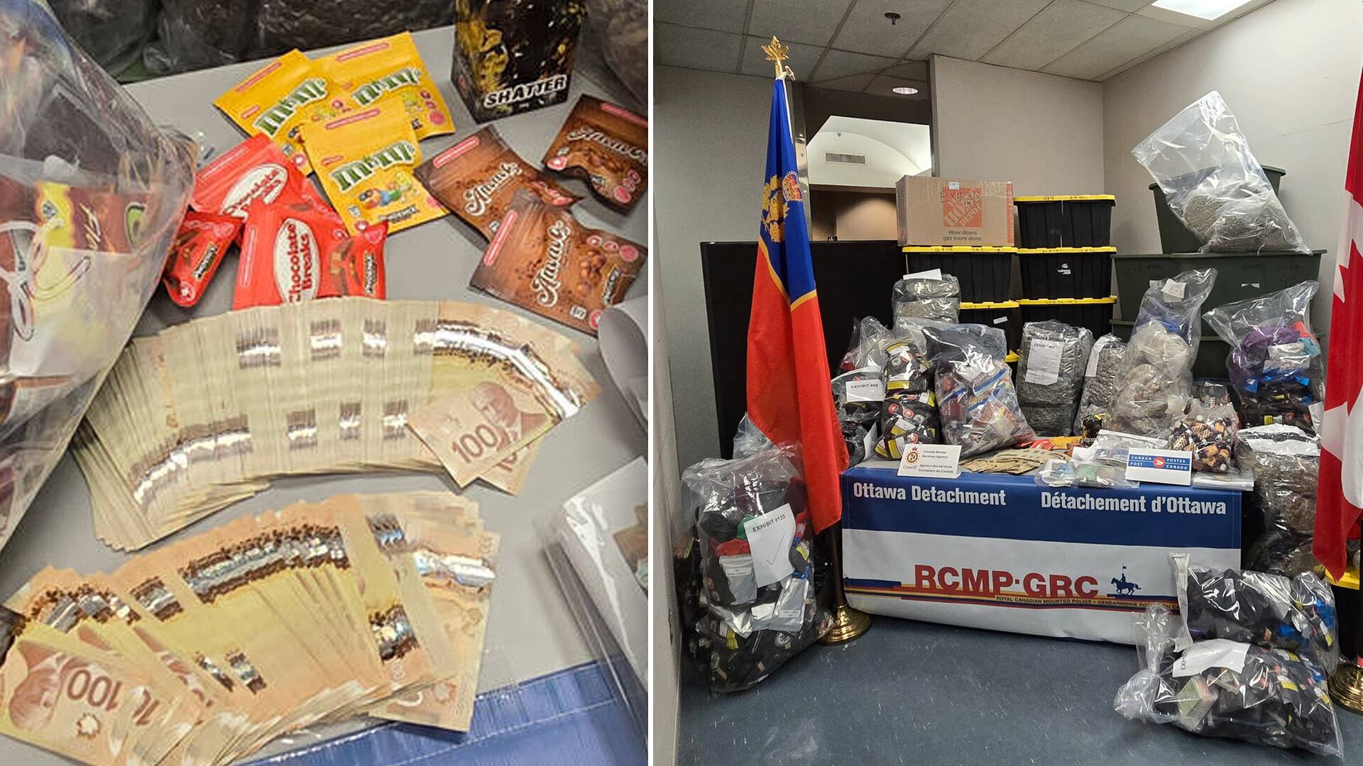Police said officers searched two homes in Ottawa south on March 10, seizing 485 kilograms of dried cannabis, 36 kg of hash, 18 kg of psilocybin mushrooms, more than 7,000 edibles, unstamped tobacco, and other products, worth an estimated $5.5 million.