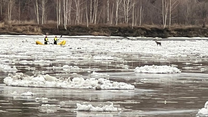 The dog was seen stranded on a drifting patch of ice on the North Saskatchewan River just after sunrise.