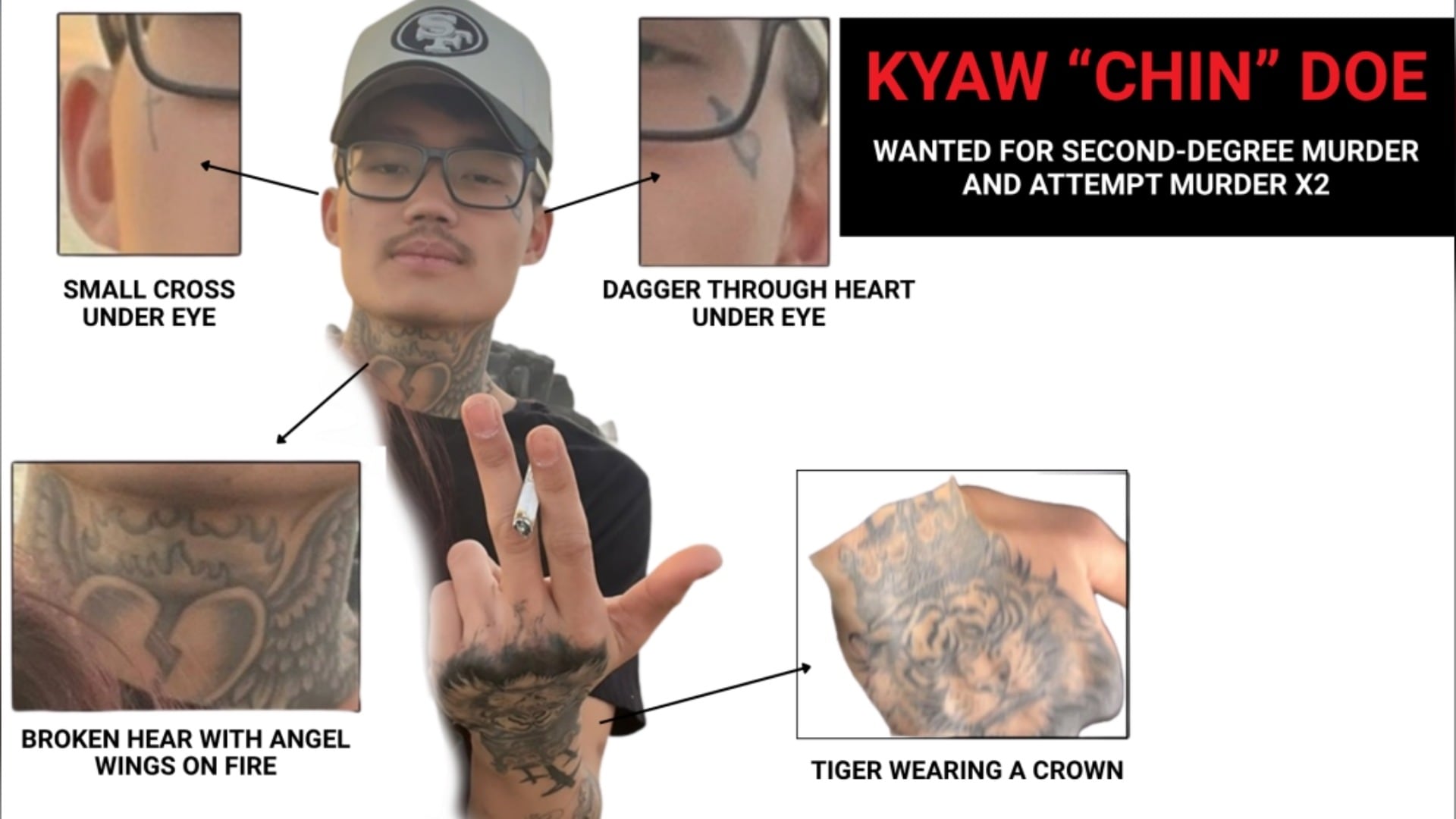 Homicide investigators have released updated photos of Doe along with his visible tattoos in the hopes it may help members of the public to recognize him. Police say he may be attempting to alter his appearance or clothing to evade arrest.