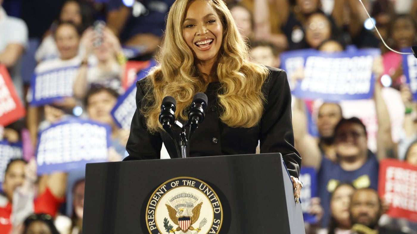“I’m not here as a celebrity, I’m not here as a politician. I’m here as a mother,” Beyoncé said at a campaign rally for Kamala Harris.