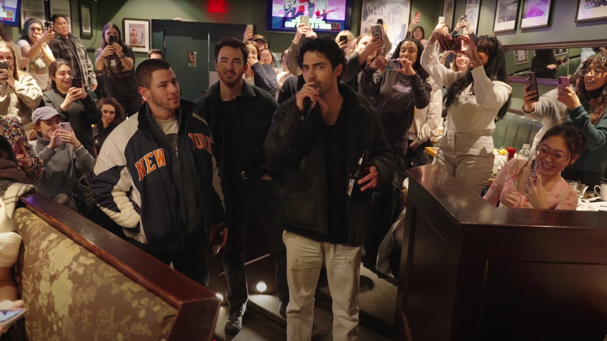 In the video, Hemingway’s Restaurant and Bar on Cumberland Street near Yorkville Avenue and Bay Street was filled with mostly young women who greeted the band with raucous cheers Tuesday as they joked about brushing up on the details of their 2008 made-for-TV movie musical “Camp Rock” on the drive over.