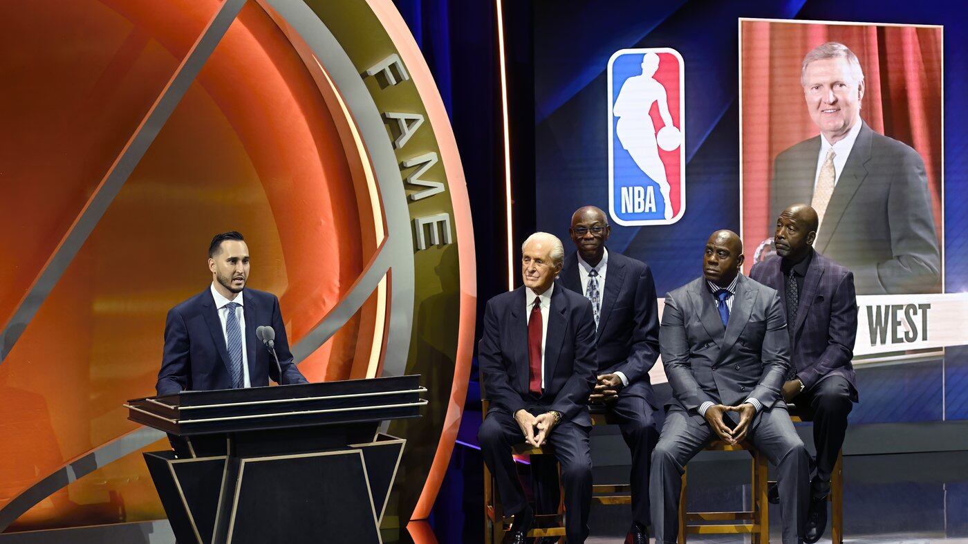 SPRINGFIELD, Mass. (AP) — The stage was filled with Laker greats when Jerry West made history Sunday night by becoming the first three-time inductee to the Naismith Memorial Basketball Hall of Fame.
