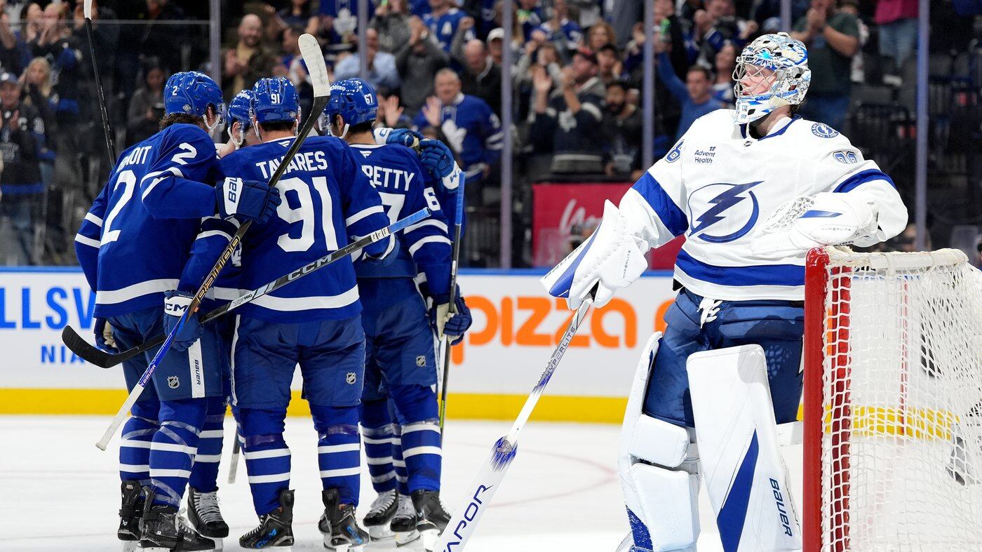 Toronto's 27th-ranked power play connected on its second opportunity when Matthews was quickest to a loose puck in the crease after Vasilevskiy couldn't squeeze Marner's initial shot.