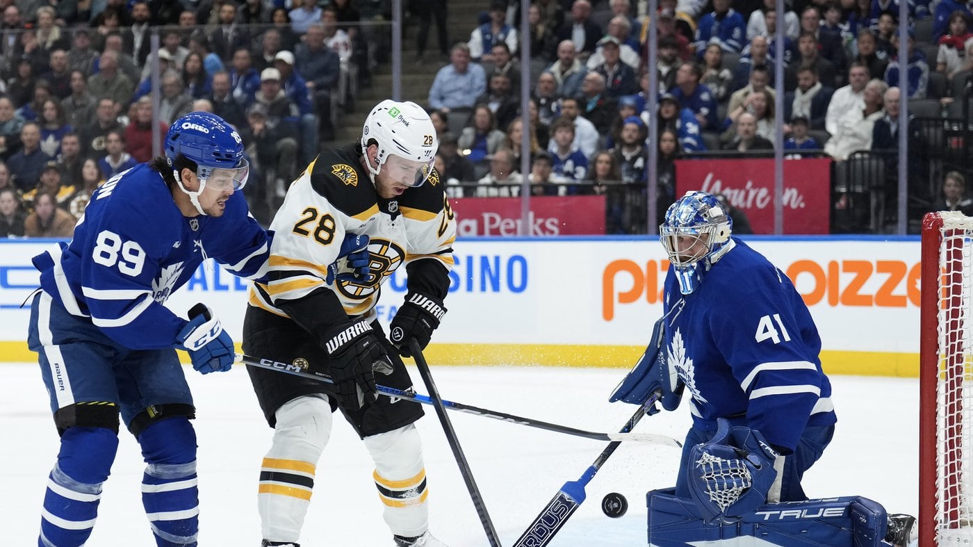 With the score tied 0-0 in the second, Swayman initially tried to freeze the puck before changing his mind. That forced Boston defenceman Nikita Zadorov into an interference penalty, which in turn led to Toronto’s first goal.
