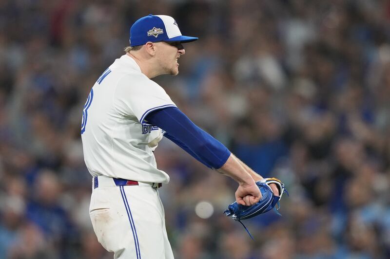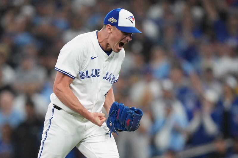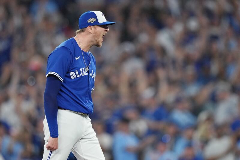 Hoffman dominates the eight and ninth Toronto Blue Jays pitcher Jeff Hoffman (23) reacts after the final out of MLB American League Championship Series game 6 baseball action against the Seattle Mariners in Toronto, Sunday, Oct. 19, 2025.