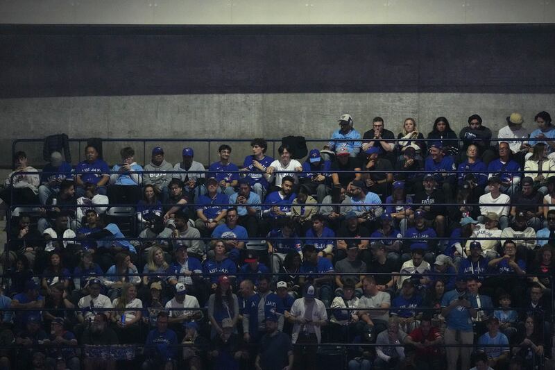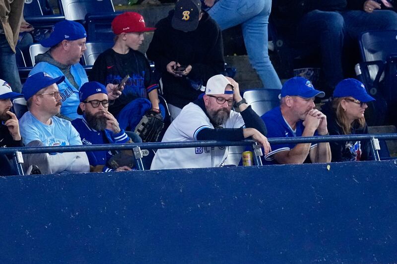 Blue Jays fans linger after the Game 2 blowout Toronto Blue Jays fans sit in the stadium after Game 2 of baseball's American League Championship Series against the Seattle Mariners, Monday, Oct. 13, 2025, in Toronto. (AP Photo/David J. Phillip)