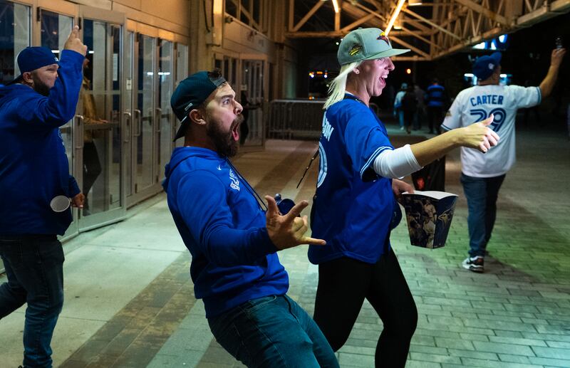 Toronto fans erupted in jubilation Wednesday night after watching the Blue Jays advance to the American League Championship Series for the first time since 2016.