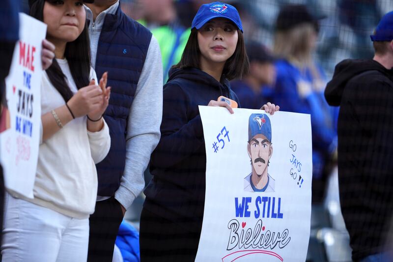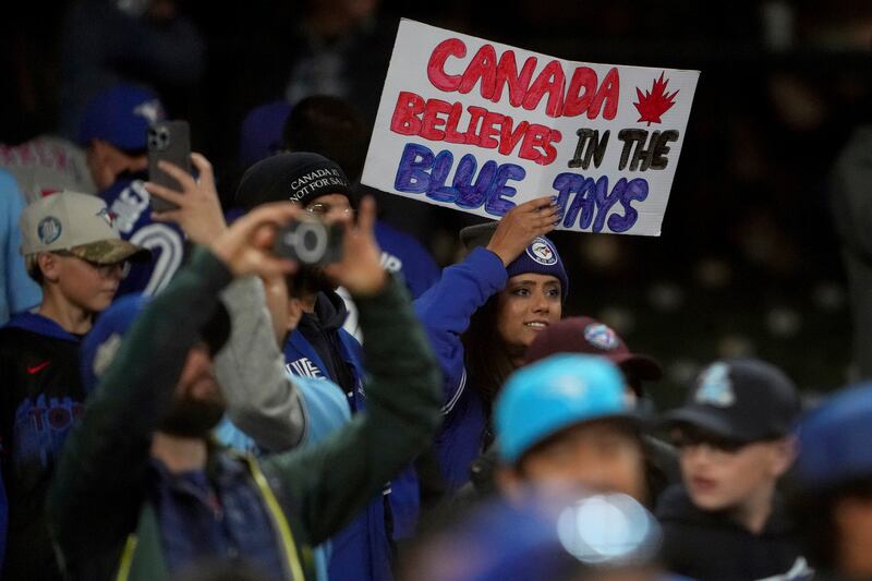 Toronto Blue Jays A Toronto Blue Jays fan holds up a sign ahead of the start of the American League Division Series MLB playoff series between the Toronto Blue Jays and the New York Yankees in Toronto on Saturday, October 4, 2025. THE CANADIAN PRESS/Frank Gunn