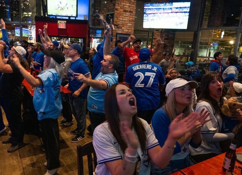 Fans filled the streets downtown, and many Toronto Maple Leafs fans also made their way to the nearest sports bar they could find to watch the Blue Jays close out the win.
