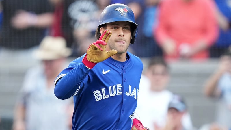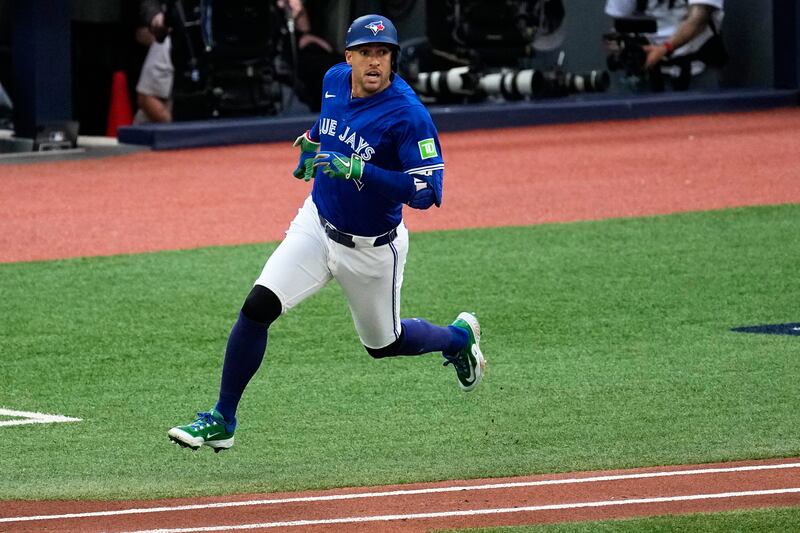 Springer runs out a double Toronto Blue Jays' George Springer runs out a double during the first inning in Game 2 of baseball's American League Championship Series against the Seattle Mariners, Monday, Oct. 13, 2025, in Toronto. (AP Photo/David J. Phillip)
