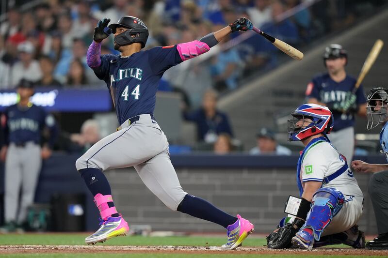 Rodríguez scores again Seattle Mariners' Julio Rodríguez (44) hits a solo home run against the Toronto Blue Jays during third inning MLB American League Championship Series game 7 baseball action in Toronto, Monday, Oct. 20, 2025.