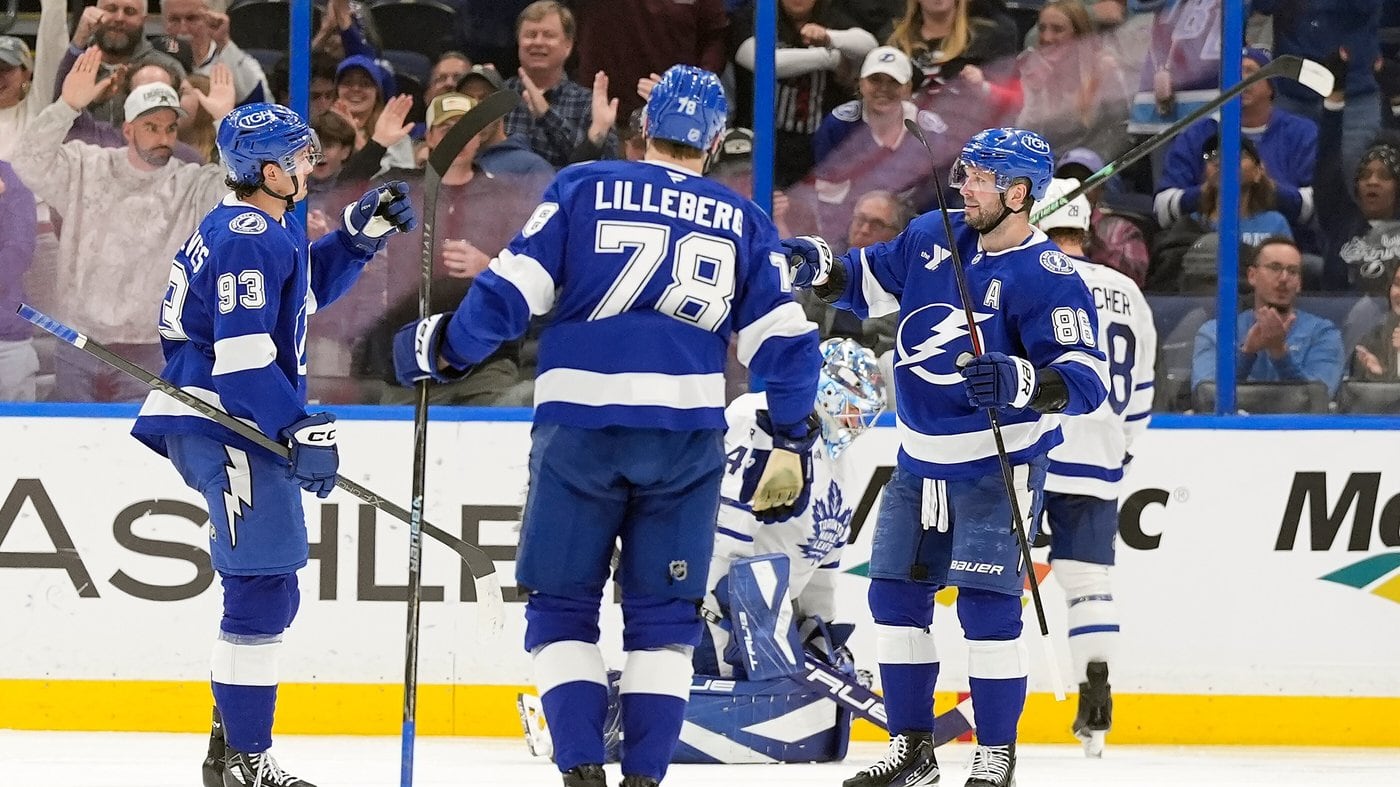 TAMPA, Fla. (AP) — Nikita Kucherov scored to give him his ninth 30-goal season and added two assists for 701 in his career and the Tampa Bay Lightning defeated the Toronto Maple Leafs 4-2 on Wednesday night for their sixth straight victory.