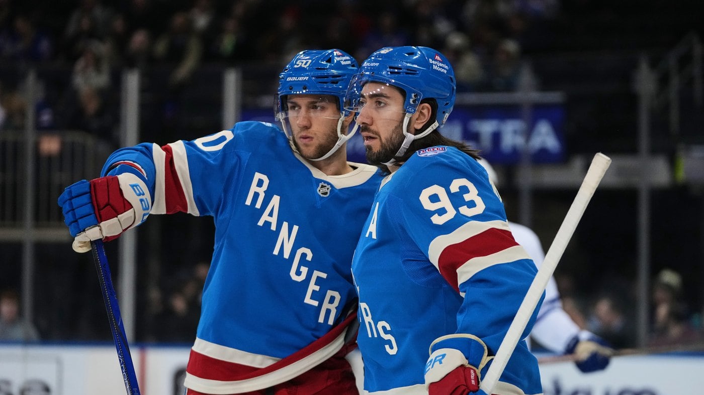 The Rangers scratched centers Vincent Trocheck and Sam Carrick. The Maple Leafs for a second consecutive night opted not to dress defenseman Oliver Ekman Larsson and forwards Scott Laughton and Bobby McMann. Roster management was the reason given.