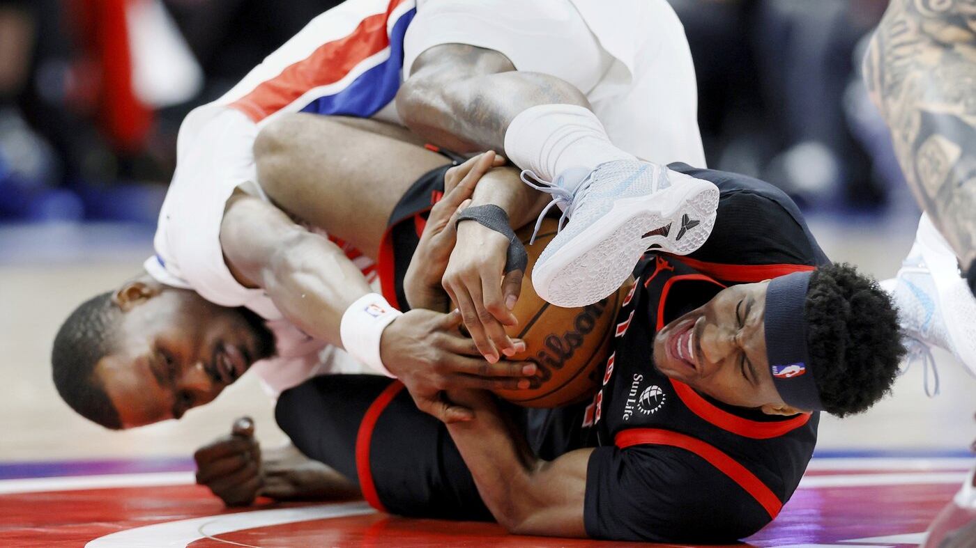 Toronto missed its first 10 shots, but was able to get back into the game with defence and rebounding. The Raptors turned 13 Detroit turnovers into 23 points and pulled down nine offensive rebounds.