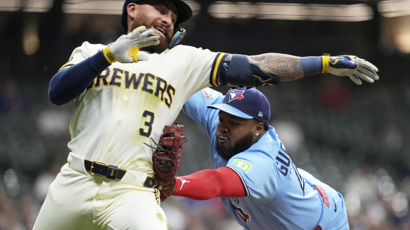 Milwaukee had forced extra innings by scoring twice against Jeff Hoffman in the bottom of the ninth after Toronto got three runs off Trevor Megill in the top half of the inning.