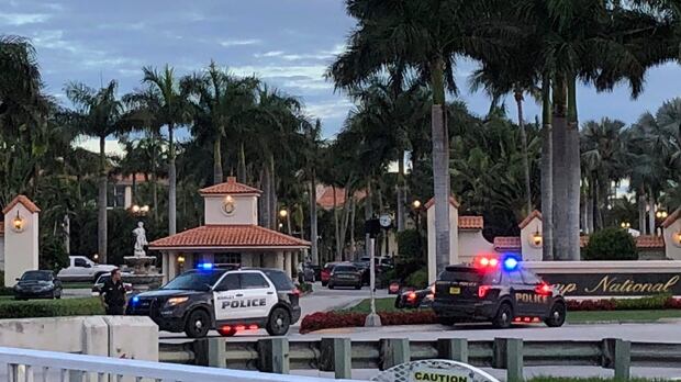 The large Trump-owned golf facility in the growing suburb was surrounded by a heavy police presence, its entrances blocked with yellow police tape and by patrol vehicles throughout the day.