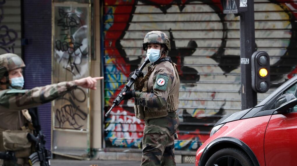 PARIS - French authorities say seven people are in custody after a stabbing outside the former Paris offices of satirical newspaper Charlie Hebdo, including the suspected assailant.
