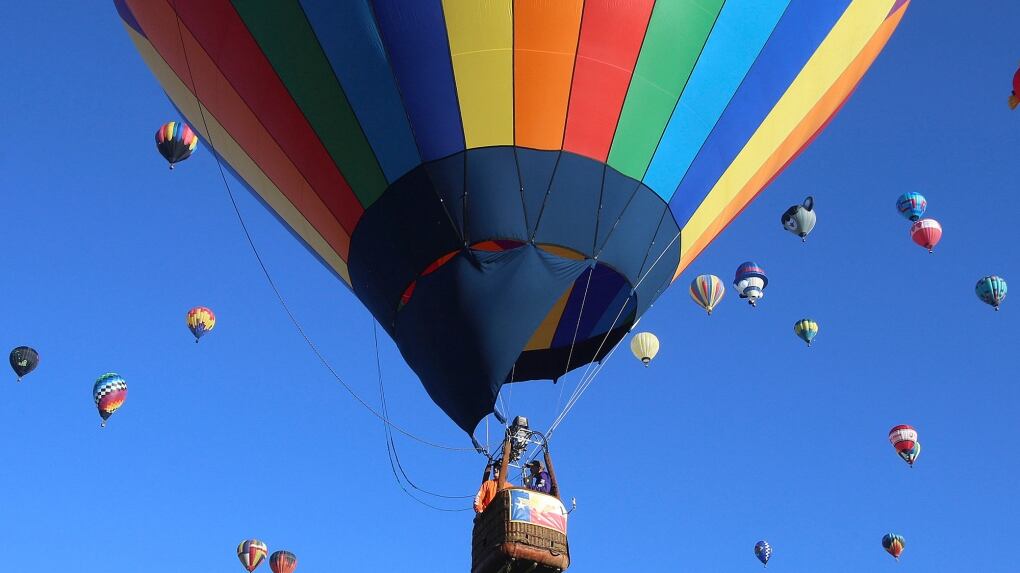 ALBUQUERQUE, N.M. (AP) - Hundreds of hot-air balloons created a colorful tapestry against a blue sky Saturday in New Mexico's largest city, kicking off a nine-day annual event that was canceled last year due to the pandemic.