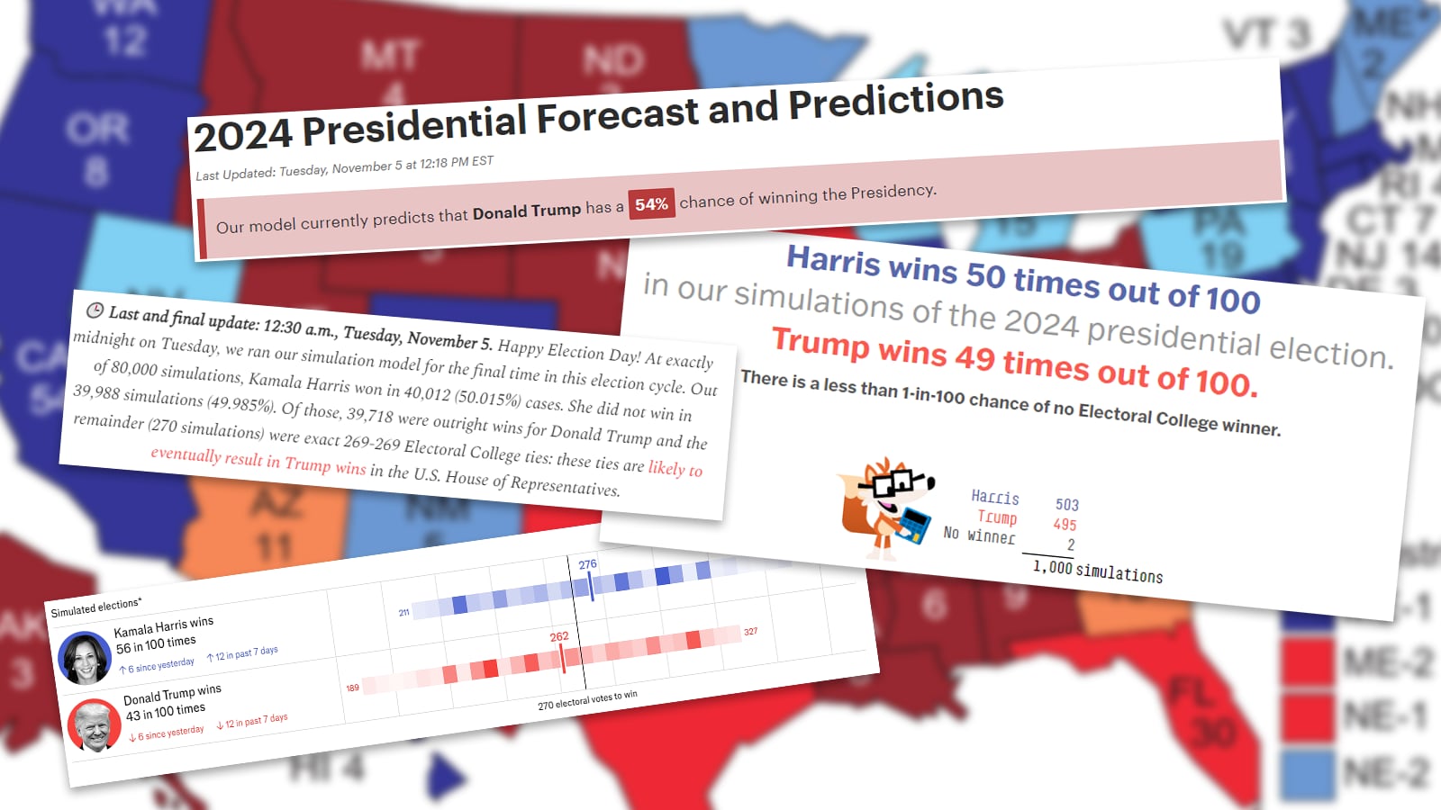 Outlets across the United States have been crunching numbers, parsing polls and working their magic models to predict the outcome of Tuesday’s presidential election.