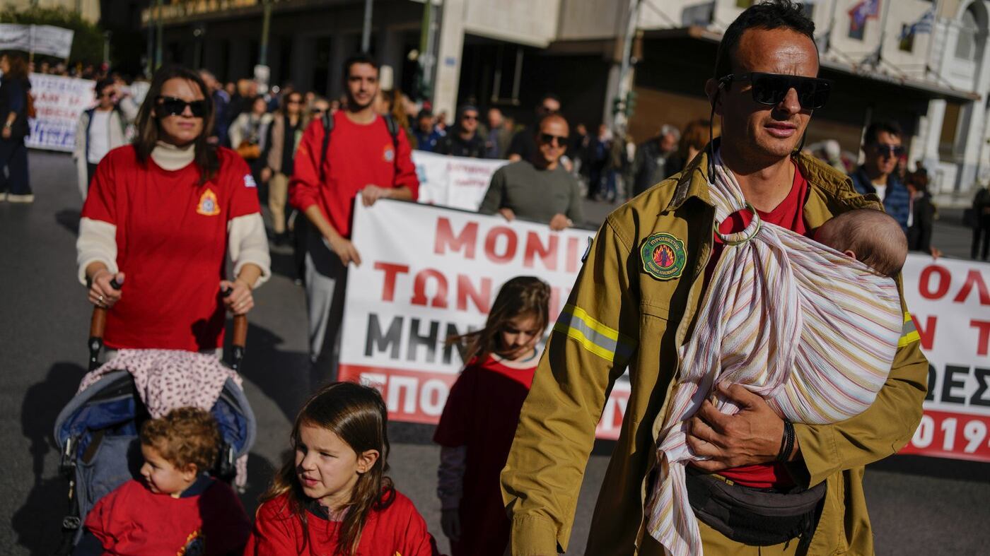 ATHENS, Greece (AP) — Thousands of workers marched through the Greek capital Athens on Wednesday as part of a 24-hour general strike called by labor unions to protest the rising cost of living and timed to coincide with the government submitting the 2025 budget to Parliament.