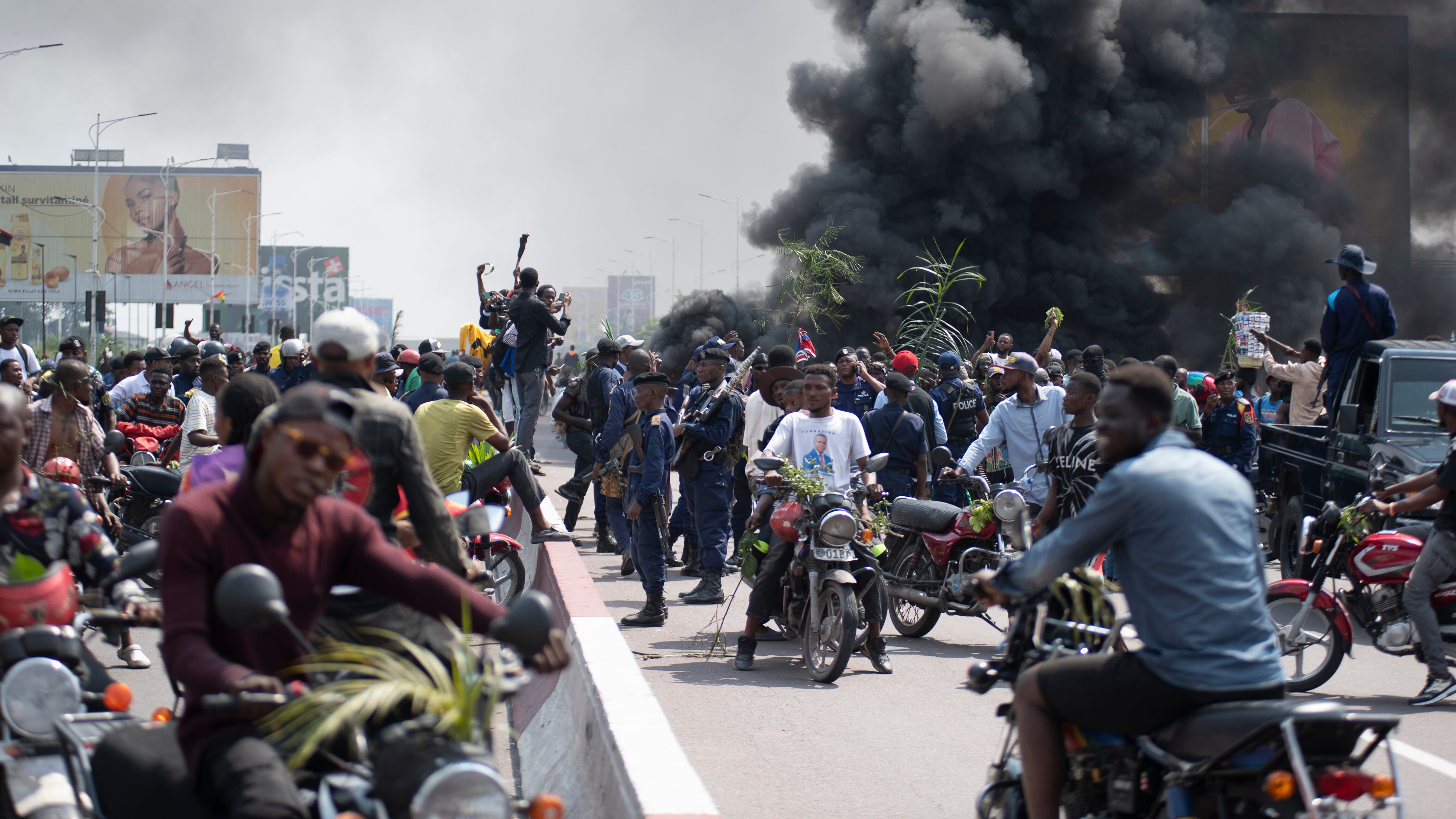 Dozens of demonstrators, meanwhile, looted and set fires to parts of at least nine foreign embassy buildings far off in the capital, Kinshasa, including those of Rwanda, U.S., France, Belgium and Kenya.