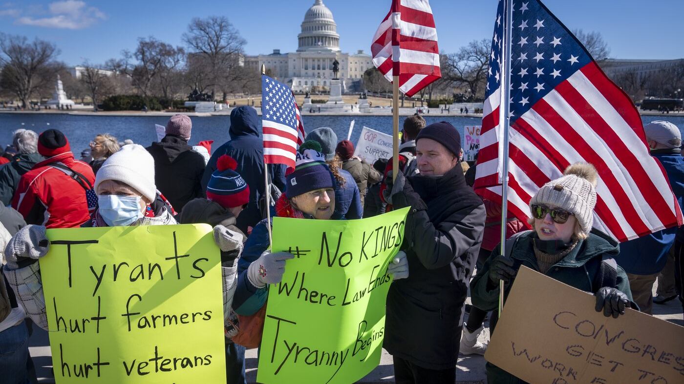 BOSTON — Protesters against President Donald Trump and his policies braved frigid temperatures in parts of the U.S. Monday, shouting “No kings on Presidents Day” in East Coast cities and attempting to enter the Arizona Statehouse to oppose a bill that would bolster fast-changing federal immigration enforcement.