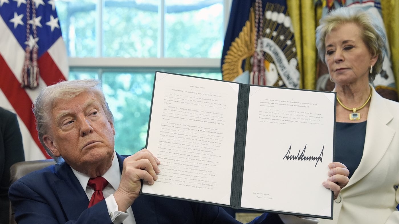 The directives do not carry the force of law but threaten to use civil rights enforcement to rid schools of DEI practices. Schools were warned that continuing such practices “in violation of federal law” could lead to U.S. Justice Department litigation and a termination of federal grants and contracts.