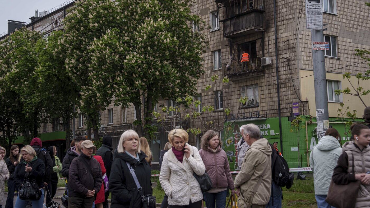 A five-story residential building in the Shevchenkivskyi district in the center of the capital was hit by drone debris, sparking a fire in several apartments where the victims were found, he said. Four people, including three children, were hospitalized, while others received treatment on site.