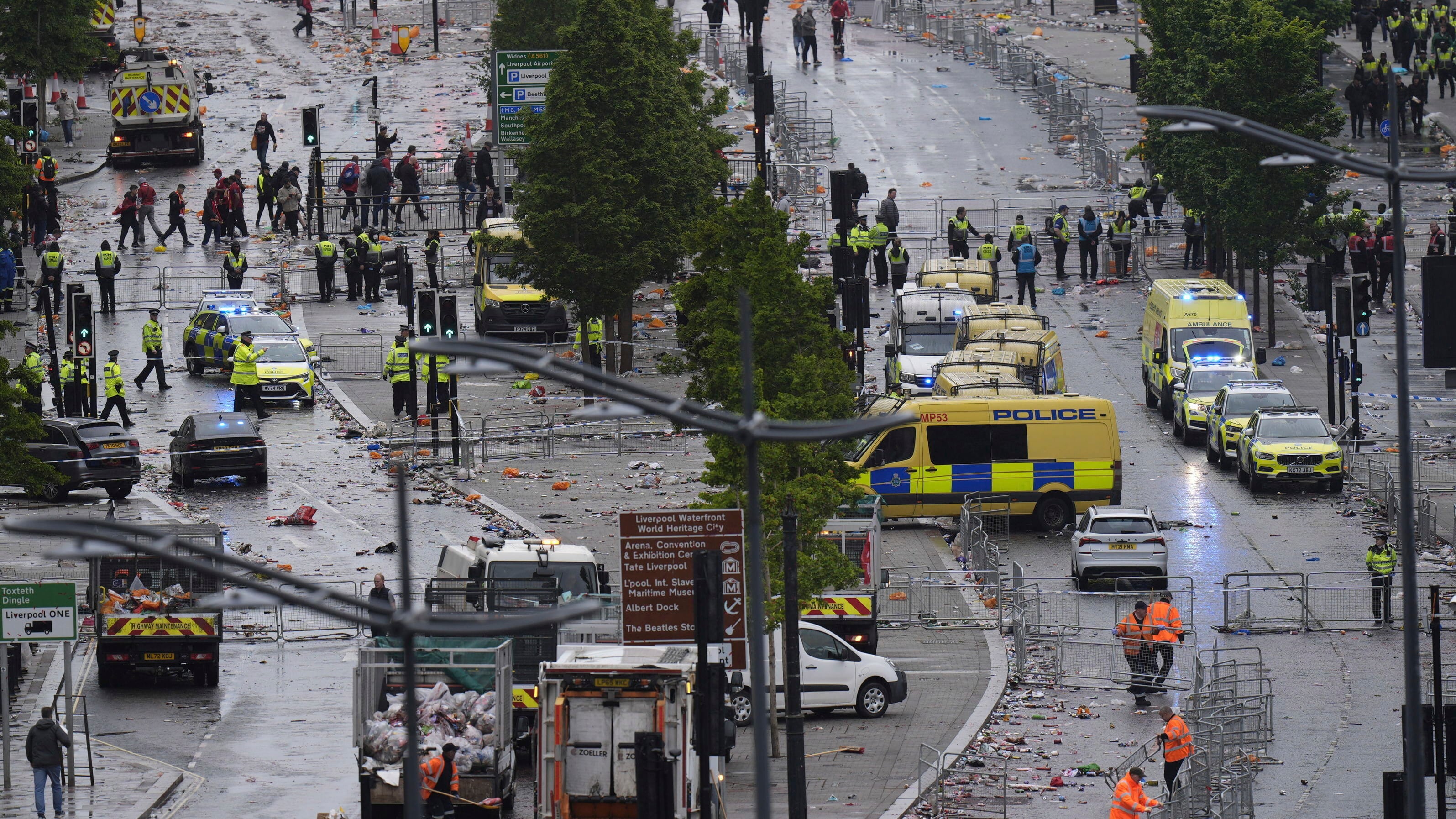 The incident “cast a very dark shadow over what had been a joyous day,” Liverpool city council leader Liam Robinson said on social media.