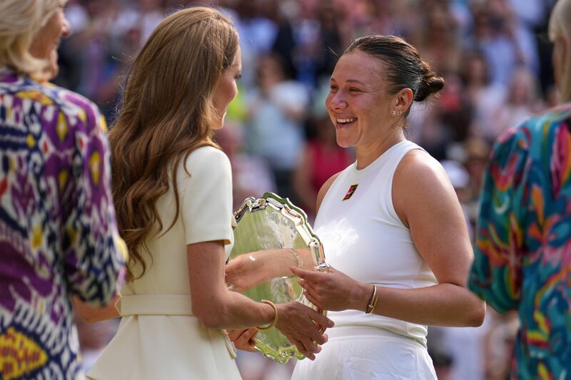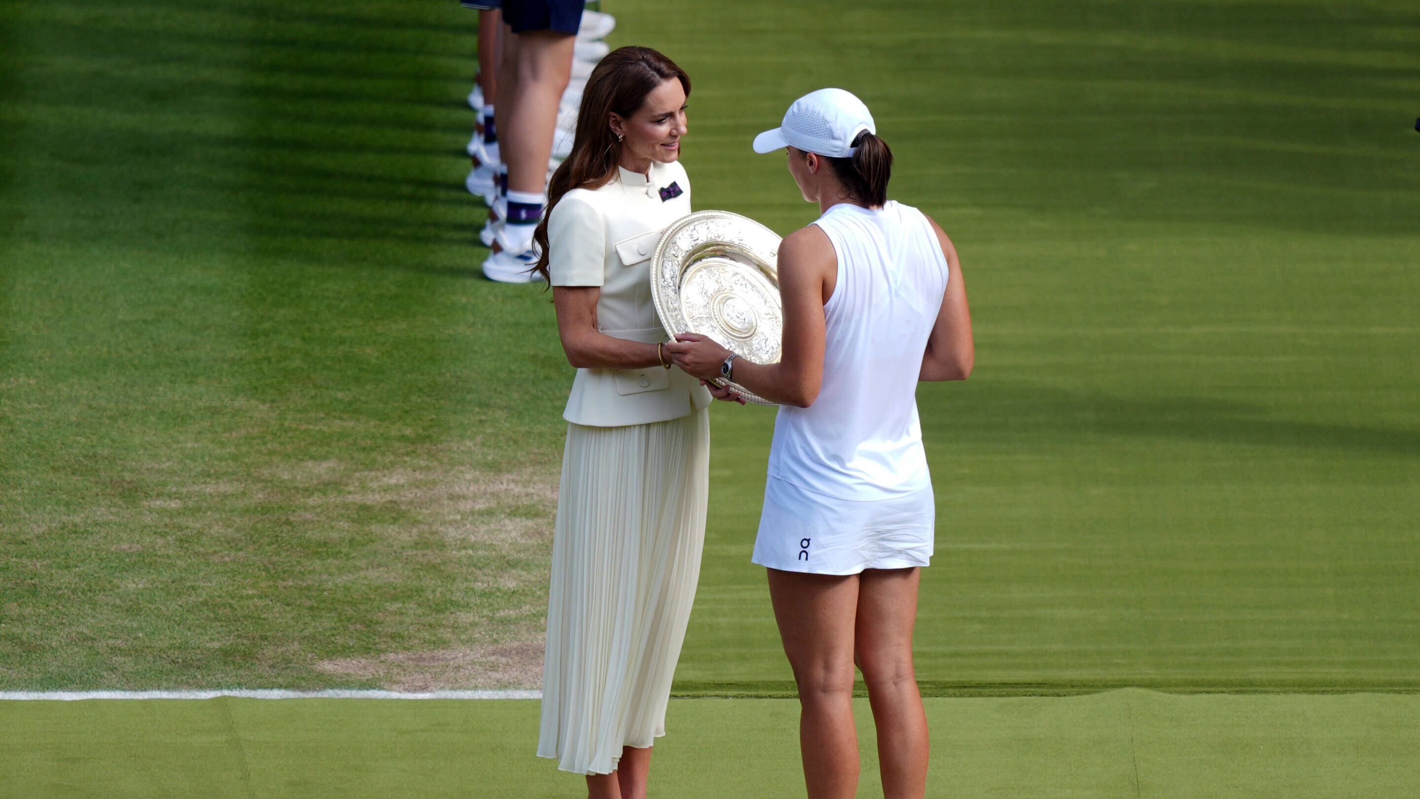LONDON — Kate, the Princess of Wales, handed out the trophy to Iga Swiatek and some consoling words to Amanda Anisimova after the women’s Wimbledon final on Saturday.